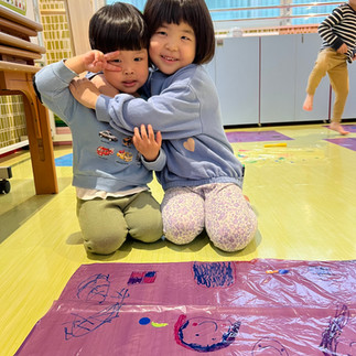 今日は2階保育室では、みんなが楽しみにしている遠足用のシート作りをしました♡