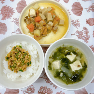 今日のメニューは、白ごはん・鶏肉と高野豆腐のうま煮・みそ汁☆