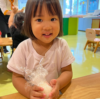 炊き立てのおにぎりを握って、海苔をまいて♡みんなで屋上でいただきました♡
