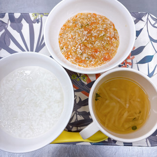 中期食は、白ごはん・鶏肉と野菜の煮物・すまし汁☆