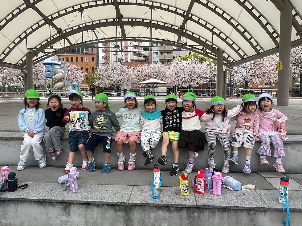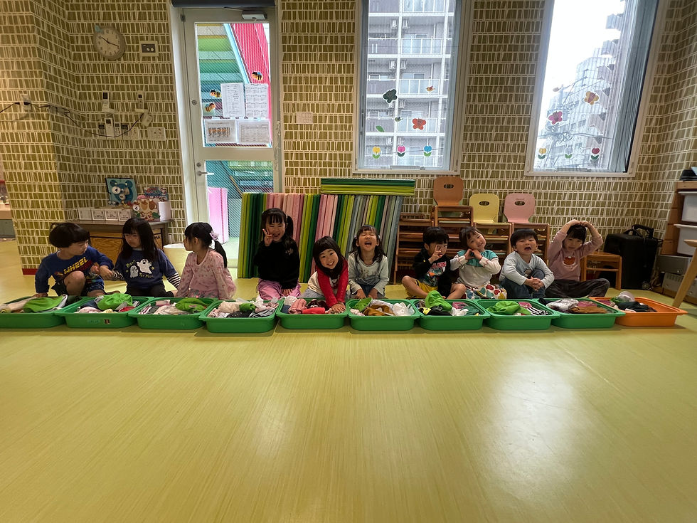 絵の具を使って桜の木を作りましたよ。ティッシュに絵の具がにじんでいく様子をよーく観察しながら楽しそうに取り組む子ども達♡