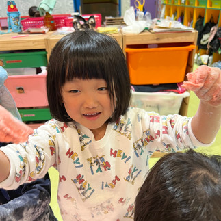 前日に伝えていたので、登園後からみんな「今日は感触あそびだよね~~(^▽^)/」ととっても楽しみにしてくれていたようです♪