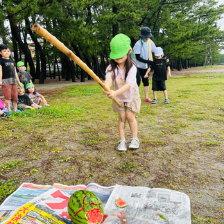 Rくんの真似をして、みんなもレッツすいか割り🍉