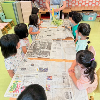 先生と引っ張り合いながらほとんどの子どもたちが上手にむけました♬